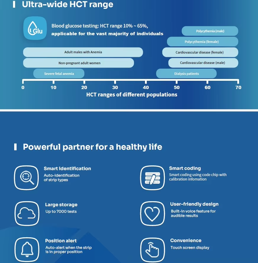 | Hematocrit Range | GLU: 10%-65% |